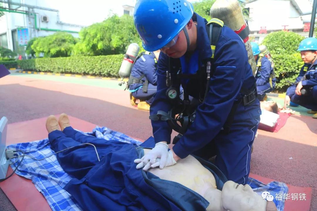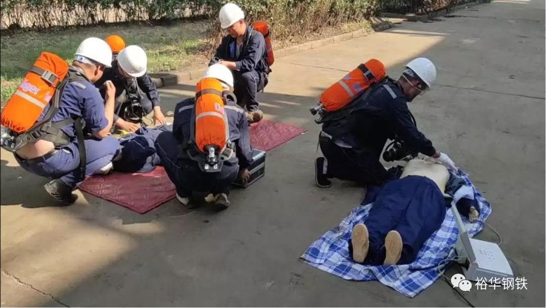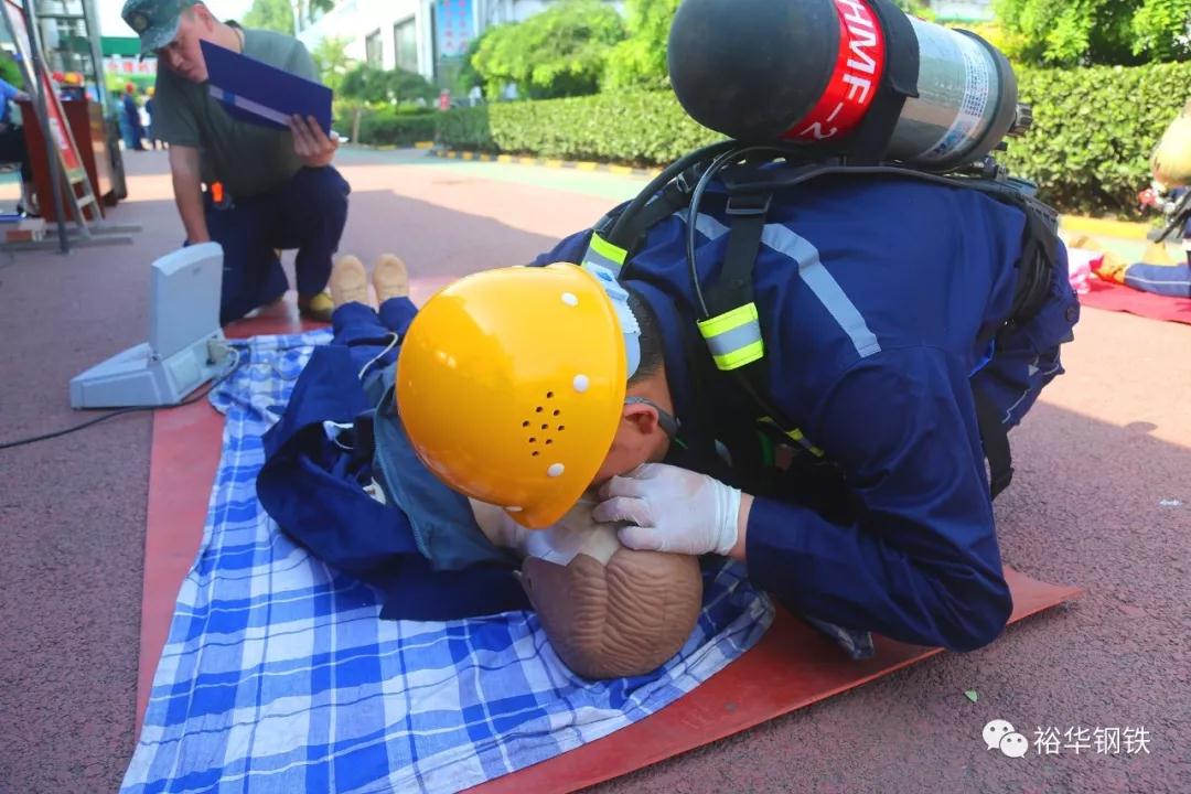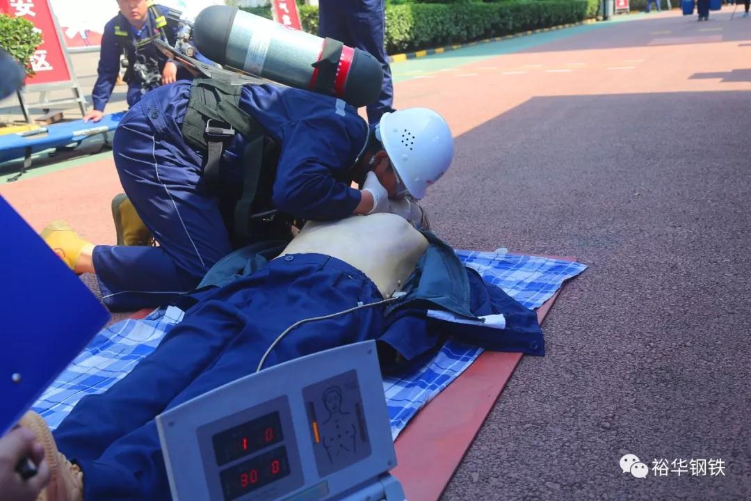 在总指挥安全处牛亮的部署安排下,演练分三部分有序进行。第一部分为煤防救援。模拟煤气柜发生泄漏,人员在处置、逃离过程中中毒并且受伤。各部门协调部署,高效、有序地开展救援工作,并对受伤人员进行止血包扎和心肺复苏及苏生器给养救治。